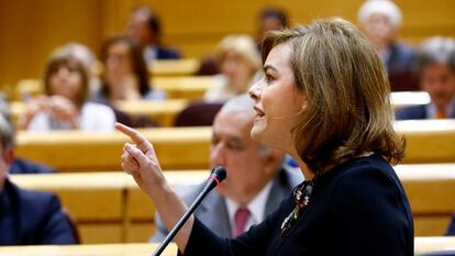 El senador Jesús Iglesias reclama una consulta y termina con un "¡Viva la República! Soraya Sáenz de Santamaría le replica que plantee una reforma de la Constitución