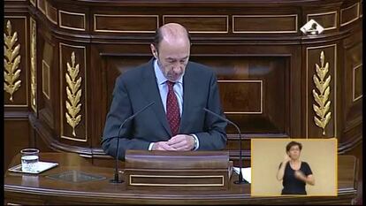 El líder del PSOE ha apoyado la advertencia de Mariano Rajoy sobre el tema central de la votación al afirmar "en esta votación solo votamos la abdicación. No la sucesión, eso está regulado en la Constitución. Eso ya lo votamos en esta Cámara en 1978 y lo ratificó ampliamente el pueblo español".