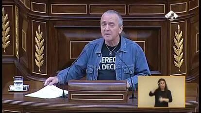 El representante de Compromís-Equo ha subido el estrado con la portada de El Jueves sobre la sucesión que no se llegó a publicar y que supuso la dimisión de varios integrantes de la revista. "Si esto se puede censurar, algo huele a podrido en el reino de España".