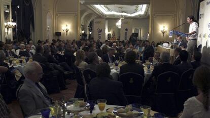 El líder de Podemos, Pablo Iglesias, se sabe una estrella mediática y actúa como tal. Consciente de que su presencia en un desayuno informativo en el lujoso hotel Ritz de Madrid levantaría suspicacias, no decepcionó. Inició su intervención con sarcasmo: “Algunos solo me imaginan entrando con militares aquí para nacionalizarlo” o “una noche en algunas habitaciones cuesta lo que gana un camarero en un mes”. Su presentación siguió el guion de anteriores discursos: señalar a los culpables de la crisis económica (“la casta”) y criticar la actuación del Gobierno español frente a los organismos internacionales y financieros. “Están vendiendo nuestro país, la patria” o “mandan los que nunca se presentan a las elecciones”.