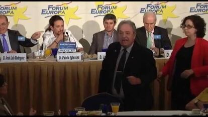 Tras el incidente, Iglesias ha asegurado que "jamás" ha asesorado "para que repriman a nadie ni para que golpeen a nadie" —líderes de la fundación relacionada con Podemos, entre ellos Iglesias, cobraron 3,7 millones de Chávez en 10 años—. "No he asesorado para que dejen a nadie en una situación económica difícil ni para que muerdan el cuello a los niños y les saquen la sangre", ha manifestado el portavoz de la formación, antes de asegurar que la intervención del hombre es "sintomática del miedo que tienen los que no se atreven a discutir con prudencia y buenas formas y con argumentos".
