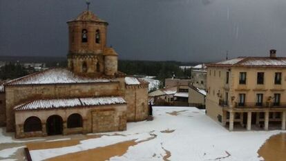 Una fuerte granizada cubre de blanco Almazán, un pequeño municipio de Soria
