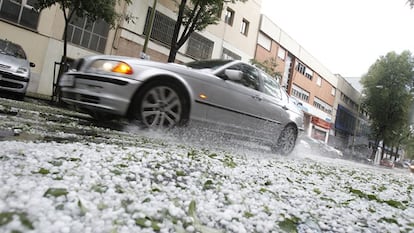 Una intensa granizada cubre la zona norte de Madrid y complica el tráfico
