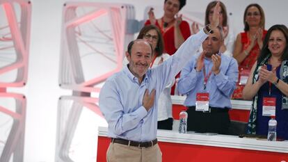 “Soy socialista y lo seré hasta el final de mis días”, ha añadido Rubalcaba entre los aplausos de los delegados que abarrotan la sede del congreso. "Todo lo que soy se lo debo al PSOE".