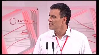 El discurso de Sánchez ha clausurado un congreso del que ha salido el primer líder del PSOE elegido por el voto directo de la militancia. El diputado madrileño ha pedido acabar con "un país que desconfía de sus políticos, un país que corre riesgos serios de quedarse en el vagón de cola de la globalización... una España hastiada e indignada".