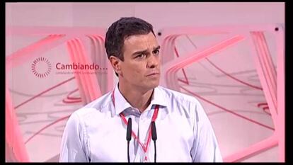 “¿Cómo se va a ganar la vida España?”, se preguntó Sánchez, que las dos veces que subió al atril este fin de semana (primero el sábado tras la aclamación y, después, ayer en la clausura) reivindicó la fuerza de la clase media como factor esencial para el futuro del país. La clase media, a la que apeló varias veces en el discurso, se ha convertido en columna vertebral de su programa, aún por rematar. “Ya está bien que siempre sea la clase media, la clase trabajadora, la que tenga que soportar la crisis”, subrayó.