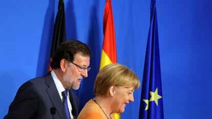 Mientras se reunían, llegó la noticia sobre la crisis de Gobierno en Francia precisamente por divisiones sobre la austeridad. Los dos mostraron su apoyo a François Hollande, aunque le dejaron claro el mensaje de que debe seguir con los ajustes que ha prometido. “Deseo a Hollande todos los éxitos en los pasos valientes que está dando y en el cumplimiento de sus compromisos”, dijo Merkel. “No voy a entrar en los problemas de Francia, pero estoy convencido de la voluntad de Hollande y Valls, porque me lo han dicho, para hacer reformas y cumplir sus compromisos”, remató Rajoy.
