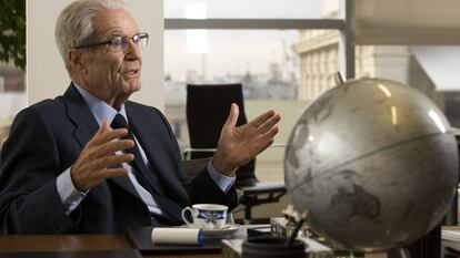 Tenía 16 años y el Atlético de Madrid acababa de ofrecerle un contrato. Pero al volver a casa con la equipación que le habían regalado y una sonrisa de oreja a oreja, su padre le frenó en seco: sin levantar la vista de los papeles, le ordenó devolver el regalo y comunicarle a quien se lo había dado que tenía que estudiar. Antonio Garrigues Walker, hijo, sobrino y hermano de abogados, estudió Derecho por tradición, no por vocación. Convirtió el despacho de su padre y su tío en un bufete con más de 1.800 profesionales, y el pasado 30 de septiembre dejó la presidencia de la firma, en la que ya no queda ningún Garrigues —prohibió que los socios pudieran incoporar a sus hijos para "evitar nepotismo" y porque así se lo aconsejaron en su primer viaje a Nueva York para ver los grandes despachos que quería imitar—. Pero recién cumplidos los 80 años, insiste: “Yo, lo único que he hecho realmente bien en la vida ha sido jugar al fútbol”.