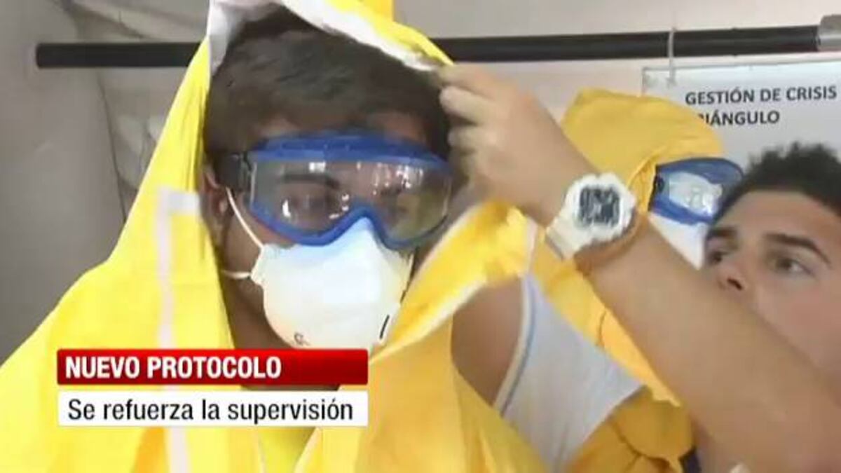 Mato avanzó dos cambios: suavizar los requisitos de temperatura para ser considerado sospechoso de ébola, y hacer un mayor seguimiento del personal que haya estado en contacto con enfermos. La ministra no dio más detalles, pero lo más probable es que los cambios vayan en línea con lo que el consejero de Madrid comunicó ayer al Sindicato de Auxiliares de Enfermería, los compañeros de Teresa Romero: que cualquier subida de temperatura acompañada de malestar u otros síntomas para que los trabajadores que han estado en contacto con enfermos de ébola sean considerados casos sospechosos. También el protocolo de seguimiento de este personal cambiará: se les considerará un grupo de riesgo, se les llamará diariamente y se les pedirá que estén siempre localizables. Además, se reforzará la figura del supervisor que dirigirá el proceso de quitarse los trajes de protección. De hecho, Rodríguez afirmó que esos son los criterios que ya se aplican en Madrid, aunque no los haya aprobado el ministerio ni el Consejo Interterritorial. Otros asuntos, como que las cámaras de las unidades de aislamiento graben lo que pase, también están sobre la mesa.