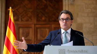 El presidente de la Generalitat, Artur Mas, ha confirmado este martes que no podrá celebrar la consulta de autodeterminación del 9 de noviembre como había previsto y que intentará sustituirla con un proceso de participación en el que habrá urnas. Mas ha comparecido en el Palau de la Generalitat admitiendo que el consenso de los partidos soberanistas se ha “agrietado” y ha puesto encima de la mesa la posible convocatoria de unas elecciones plebiscitarias para reconfirmar el resultado del proceso participativo.