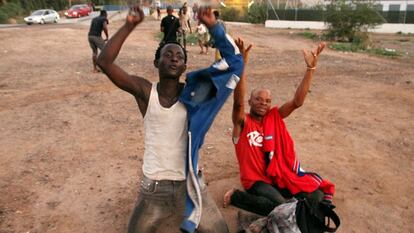 Los inmigrantes que han conseguido entrar han seguido a la carrera por el Paseo Marítimo, donde se han ido despojando de dicho calzado con clavos y de ropa, mientras se dirigían al Centro de Estancia Temporal de Inmigrantes (CETI) al grito de "bosa, bosa" (victoria, victoria).