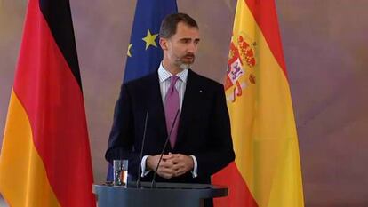 En su primera visita a Alemania como Rey de España, don Felipe ha alertado de la necesidad imperiosa de retornar a una senda de crecimiento sostenible. “No se trata solo de un desafío económico. Es también un aspecto que afecta al funcionamiento de las instituciones, a su credibilidad y a la percepción de nuestros pueblos respecto a su eficacia”, dijo Felipe VI en la recepción oficial que ofreció el lunes el presidente alemán, Joachim Gauck. Fuentes de la Casa Real informaron durante el viaje a Berlín que el Rey viajará a Cataluña el próximo viernes para visitar la planta de Seat de Martorell, donde se conmemorarán los 30 años del lanzamiento del Seat Ibiza. Este será el segundo acto de Felipe VI en Cataluña desde su proclamación, en el que está previsto que coincida con el presidente de la Generalitat, Artur Mas.