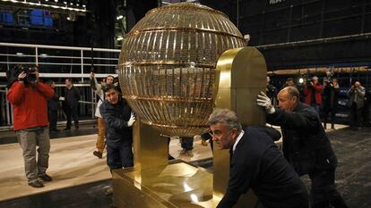 Los dos bombos que repartirán suerte el 22 de diciembre en el sorteo extraordinario de la Lotería de Navidad —el que guarda los números y el de los premios— han llegado este martes al Teatro Real de Madrid, que acogerá por tercer año consecutivo el evento. En este escenario los niños de San Ildefonso cantarán un año más el premio Gordo que repartirá 640 millones de euros, 400.000 euros al décimo.
