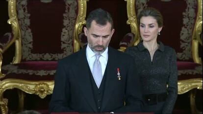 El Rey ha expresado este miércoles su “rechazo y desprecio al terrorismo”, cuyo único fin, ha dicho, es “someter al mundo a su visión perversa y monolítica y cuyos enemigos son las convicciones democráticas, la libertad en el ser, en el sentir, en el creer y en el querer”. En su primer discurso ante el cuerpo diplomático acreditado en España y dos semanas después de los ataques yihadistas de París, Felipe VI ha lanzado un “mensaje de firmeza” ante el terrorismo, al que no ha querido poner adjetivos, quizá para no excluir a las víctimas de ningún tipo de violencia o tal vez para evitar su asociación con una creencia religiosa.