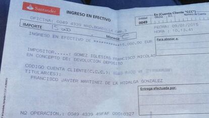 Gómez Iglesias estaba citado en el juzgado a las 10 de la mañana y a las 10.13 consta que estaba en la oficina del Banco Santander de la calle de Boadilla del Camino, en el barrio madrileño de Sanchinarro, haciendo un ingreso en efectivo de 15.000 euros en la cuenta de Francisco Javier Martínez de la Hidalga González, el empresario que inicialmente le acusó de estafa y luego retiró la denuncia. Francisco Nicolás había recibido 25.000 euros de este empresario, le había devuelto 10.000 y quería presentar en el juzgado el comprobante de haber devuelto los 15.000 euros restantes.