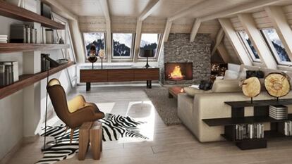 La exclusiva urbanización está situada a pie de pistas y junto al remonte. Las casas, como se puede ver en la imagen correspondiente al piso piloto, ofrecen magníficas vistas a la montaña aranesa.