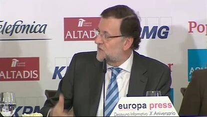 El problema con el que se encuentra, en las ruedas de prensa que concede o incluso en este tipo de foros exclusivos o restringidos, es que la mayor parte de las preguntas que se le plantean no versan sobre el crecimiento del país ni sobre la reducción del paro. En el acto de ayer la mayoría de las que se registraron (que luego el moderador resume a su criterio) fueron sobre su sucesión al frente del PP y sobre la crisis abierta en el Gobierno y el partido con el caso Rato y con el caso de Federico Trillo y Vicente Martínez Pujalte y sus compatibilidades éticas como parlamentarios y asesores privados.
