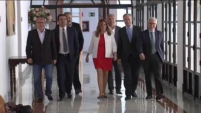 Ciudadanos también mantiene posiciones. “No nos sacan de la duda y la desconfianza”, afirmó el portavoz de esta formación Juan Marín tras escuchar las propuestas de la presidenta en funciones. El diputado reprocha que se ha dicho “qué, pero no cómo”, pero mantiene abierta la puerta a seguir negociando. “No nos ha convencido, pero hemos visto disposición”, matizó. Marín repitió que, pese a admitir que es una “apuesta arriesgada para Ciudadanos”, es partidario de un acuerdo. Y su mayor reproche fue hacia el Partido Popular por proponer durante la campaña que gobierne la lista más votada y ahora mantenga inamovible su voto en contra.