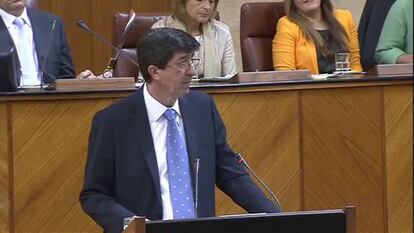 El candidato de Ciudadanos (C’s), Juan Marín, pronunció un discurso amable en el que se comprometió a “arrimar el hombro” para garantizar la gobernabilidad con “pactos puntuales”. Simultáneamente, el líder nacional de la formación, Albert Rivera, se manifestó con dureza en Barcelona contra el acuerdo en Andalucía, que tuvo su eco minutos después en el Parlamento andaluz. Tras abandonar el pleno, Marín cambió su relato y exigió que los expresidentes Manuel Chaves y José Antonio Griñán entreguen el acta de diputado y senador antes de que caduquen sus cargos. “Si no hay hechos no les vamos a creer y nuestra postura seguirá siendo el no en la segunda votación”.