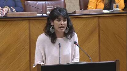 La portavoz de Podemos, Teresa Rodríguez, ha insistido en su petición de que la Junta rompa relaciones con los bancos que desahucien y en reclamar el número exacto de los altos cargos y personal de libre designación de las empresas públicas. El PSOE se resiste a dar a conocer este dato aunque la ley de Transparencia le obliga. En cuanto a la demanda sobre las entidades financieras, la socialista la ha considerado fuera de la legalidad. Rodríguez ha pedido hechos y no promesas. “Nos gusta la música del discurso de investidura y nos gusta la letra pero queremos saber cómo se ejecutan”, ha reclamado Rodríguez. Esta se ha arrogado en varios momentos de su intervención a llevar la bandera de las demandas de los ciudadanos más castigados por la crisis, algo que Díaz en su réplica no ha dejado pasar: “Me da la impresión de que cree que sus votos son de más calidad. Usted habla en nombre de la gente y yo de más gente”. En las negociaciones con Podemos se barrunta otro obstáculo: la posibilidad de que la abstención de este grupo sea sometida a consulta entre las bases, que son muy refractarias a dejar pasar la investidura, según admitió Rodríguez.