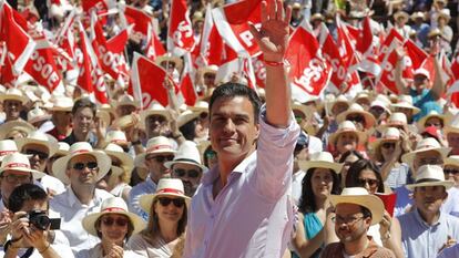 “Madrileños y valencianos, el 24 de mayo vamos a liberarnos de la correa de Gürtel”, enfatizó el líder socialista, para recordar que es en estas dos comunidades donde esa trama de corrupción se ha enseñoreado. Los candidatos a la alcaldía de la ciudad, Joan Calabuig, y a la Comunidad, Ximo Puig, resaltaron las numerosas veces que Sánchez ha estado en esta región en sus pocos meses al frente del PSOE, “más que Mariano Rajoy en cuatro años”, reprocharon. El presidente del Gobierno estará el próximo jueves en esa misma plaza de toros.