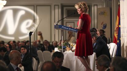 La presidenta del Partido Popular madrileño y candidata al Ayuntamiento de Madrid, Esperanza Aguirre, se ha declarado "preocupada" por la encuesta publicada este domingo por EL PAÍS, en la que aparece casi empatada con Manuela Carmena (Ahora Madrid, la formación de Podemos y Ganemos). Quizá por ello, esta mañana, en un desayuno informativo, ha radicalizado su discurso contra esa formación: "Allá los madrileños que quieran tener a Podemos en la alcaldía". En su opinión, Ahora Madrid atenta contra sus principios, que son "la libertad, la vida, la propiedad, el imperio de la ley y el orgullo de ser españoles". Eso, la formación de Carmena, a la que también ha puesto como ejemplo de que "hay demasiados mentirosos y circulan demasiadas mentiras en política". Respecto a Podemos, ha insistido en que, "si se convierte en la primera fuerza política a nivel nacional, será la última vez que votemos libremente; votaremos pero como en Cuba".