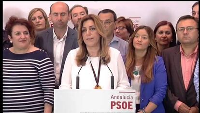 Díaz ha sido reservada a la hora de valorar los resultados de su partido en el conjunto de España, donde el PSOE podría ampliar su presencia institucional mediante las alianzas. La secretaria general del PSOE andaluz ha pedido sin citarlo a su líder federal prudencia. “El PSOE ha ganado en Extremadura, ya lo había hecho en Asturias y Andalucía y ha ampliado su poder territorial. Ahora tiene la responsabilidad de gestionar una situación muy complicada. El PSOE tiene que hacerlo con mucha cautela, prudencia y responsabilidad porque cualquier decisión tiene mucho riesgo porque estamos en un escenario inédito en España”, ha subrayado.