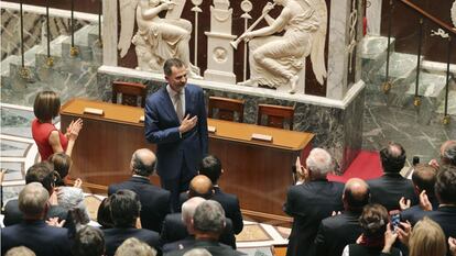 Rara vez interviene ante la Cámara baja francesa un jefe de Estado o Gobierno extranjero y, por tanto, sus mensajes revisten un especial simbolismo. En el caso de Felipe VI, recibido con un aplauso de medio minuto por los diputados y ministros del Gobierno, su apuesta por la Unión Europea llega en pleno auge del ultraderechista Frente Nacional, que propugna la salida del euro y el restablecimiento de las fronteras interiores.