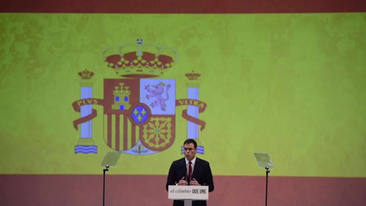 La ambición de Pedro Sánchez es liderar “un cambio valiente, que una, con valores socialdemócratas” y en el que “se reconozcan todos los españoles”. Esta fue su primera declaración de intenciones tras ser proclamado el domingo candidato socialista a la Presidencia del Gobierno. “Lideraremos el buen gobierno desde la moderación con alternativas valientes y constructivas”, anunció. El paro y la corrupción son las dos lacras contra las que luchar dentro de la España federal, a la que aspira. La novedad de la escenografía del acto fue la sobreimpresión en una pantalla de la bandera constitucional de España.