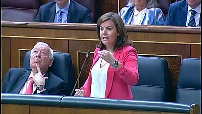 A ambos diputados ha respondido la número dos del Gobierno con referencias a lo que hizo José Luis Rodríguez Zapatero al dejar, según dijo, a España al borde del rescate. "No estaremos satisfechos hasta no sacar de la crisis a los que perdieron empleo cuando gobernaba el PSOE" y, "aunque lo repita, este país está mucho mejor que cuando gobernaba el partido que usted apoyaba", ha asegurado.