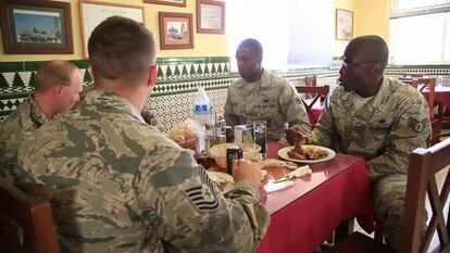 Un gran póster de la Virgen de los Dolores del Calvario escoltada por dos largas ristras de ajos preside la entrada a la cantina de la base militar de Morón (Sevilla, 28.240 habitantes). Muchos de los clientes de Manolo Martín, el dueño, son marines estadounidenses, pero él no ha claudicado en un solo centímetro de pared: el lugar está empapelado de fotos de toreros, motivos religiosos y algún avión. “Yo soy muy de Sevilla. Me gustan los toros, la feria y el Rocío, y a ellos se lo extrapolo (sic)”. A las 12 del mediodía, un grupo de americanos altos como castillos se sienta a comer un tanque de salmorejo. “Les encanta la comida española, las tortillas vuelan”, comenta, orgulloso. La que hay en la barra tiene 20 huevos y el diámetro de la bandeja de un camarero. Martín es, probablemente, una de las personas que más se alegra por el acuerdo entre España y EE UU para que Morón sea base permanente de la fuerza de reacción estadounidense para África. El pacto permite a los americanos aumentar su contingente hasta 2.200 militares, 500 civiles y 36 aeronaves. Son muchas tortillas.