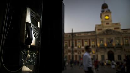 Los teléfonos públicos comenzarán a desaparecer en 2017. La Puerta del Sol, con 12 aparatos, es uno de los núcleos de resistencia de estos artefactos del siglo pasado