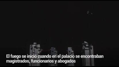 Un espectáculo de luz y sonido sobre la fachada del tribunal recrea este jueves el siniestro y la reconstrucción del palacio