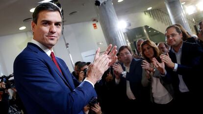 La reunión interna y un acto posterior de cierta solemnidad se vieron perturbados por los acontecimientos en Cataluña con los pasos adelante que ha dado el secesionismo. Hoy era el día en el que Pedro Sánchez presentaba ante los presidentes autonómicos socialistas y secretarios generales la propuesta de reforma constitucional. Todo se ha hecho, pero antes, durante y después el órdago de los independentistas catalanes ha estado sobre la mesa. "Ni Cataluña ni el conjunto de España están en un callejón sin salida; la mayoría de los ciudadanos deben saber que no están abocados a un proceso secesionista", ha proclamado Sánchez en un acto público en Madrid, en el que ha resaltado la gravedad de lo que ocurre, pero ha dejado una puerta a la esperanza.
