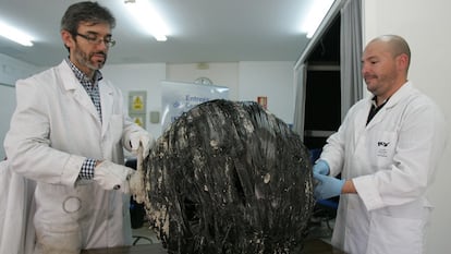 El impacto con el suelo deformó su forma esférica. El centro que examina los objetos caídos del cielo usará rayos X para averiguar su procedencia