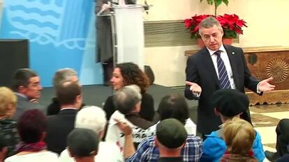 El lehendakari, Iñigo Urkullu, ha reprendido este viernes al histórico dirigente de la izquierda abertzale Tasio Erkizia y a su acompañante por exhibir, mientras se celebraba un acto oficial del Gobierno vasco, un cartel que reclamaba el acercamiento de los presos de ETA a cárceles vascas.