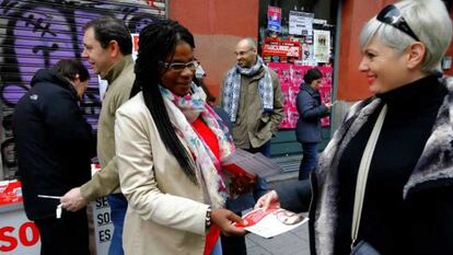 Rita Bosaho nació en 1965 en Guinea Ecuatorial. Es enfermera, española y va de número uno en la lista de Podemos por Alicante, por lo que es casi seguro que el 20-D se convertirá en la primera persona negra en llegar al Congreso de los Diputados. “Ya era hora ¿no?”, bromea en un descanso de esta agitada campaña electoral. A 400 kilómetros de distancia, Consuelo Cruz pega carteles de Pedro Sánchez en una céntrica calle de Madrid. Se felicita por la probable elección de Bosaho. “No puede haber verdadera integración sin representación política, es una asignatura pendiente en España”, señala. Consuelo es de Cali (Colombia), también tiene la piel negra y milita desde hace más de una década en el PSOE, partido con el que concurre a las próximas elecciones en el puesto 18º de la lista de Madrid. “¿Cómo vamos a sentirnos representados si no somos visibles y entramos en las instituciones?”, se pregunta esta combativa activista, que durante años trabajó codo con codo con el fallecido Pedro Zerolo para ampliar los derechos de los inmigrantes.