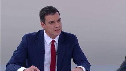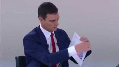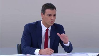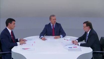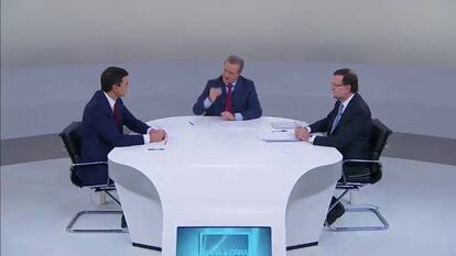 El debate ha comenzado con anécdota. El moderador ha pedido a Pedro Sánchez que resuma su idea de España en un minuto, pero el candidato socialista se ha extendido sobre la ausencia de Rajoy en otros debates. Entonces Campo Vidal ha interrumpido al líder socialista y le ha pedido que se ciñera a la pregunta formulada.