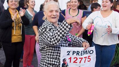 Pocos días antes del sorteo, Francisco le revendió uno de los décimos ahora premiados a un primo. "Tenía dos y quería comprar otra terminación para tener más probabilidad. Al menos, el premio ha quedado en la familia", afirma. "Lo primero que vamos a hacer es mudarnos. Vivimos en un piso muy pequeño para mis tres hijos y para el que viene en camino", dice Debla Adán, mujer del primo de Francisco. "Mi marido es camarero, pero lleva en paro muchos años. Solo contamos con los 426 euros de la ayuda", asegura la agraciada, embarazada de ocho meses y que vive en una vivienda municipal. "Pagamos 50 euros al mes", apunta.