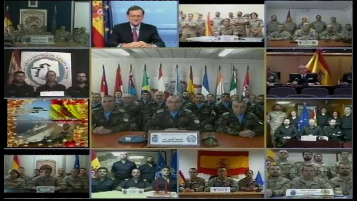 Rajoy ha felicitado las fiestas navideñas a los militares por videoconferencia desde el Palacio de La Moncloa y, además de agradecer su trabajo en defensa de los intereses de España, les ha dicho: "Las misiones no acaban hasta que volvéis a casa sanos y salvos".