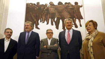 En esta restitución institucional del famoso cuadro popular han tenido que ver distintas instituciones: Izquierda Unida, que desde 2003 lo propuso como metáfora de la Transición (“y de la Resistencia antifranquista”, dice el pintor) del Congreso, Comisiones Obreras, el propio Congreso de los Diputados… Las gestiones para que este cuadro, famoso por su repercusión y por su historia, estuviera en alguna dependencia del palacio de la soberanía popular se aceleraron en 2003, pero hasta ahora la burocracia nacional no había sido capaz de cumplir el deseo de las entidades que persiguieron este fin y del autor, que ayer respiraba feliz.