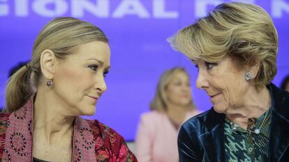 Esperanza Aguirre y Cristina Cifuentes, que aspira a suceder a la primera al frente del PP de Madrid, rivalizaron en autocrítica durante la junta regional del partido.