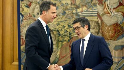 El Rey ha recibido la tarde de este lunes al presidente del Congreso, Patxi López, quien le ha entregado una nueva lista de representantes de los partidos con presencia en el Congreso. Los líderes políticos se volverán a reunir esta semana con Felipe VI, como parte de la segunda ronda de consultas, que comenzará "a partir del miércoles", según el comunicado oficial emitido el pasado viernes por la Casa del Rey. Los portavoces de EH-Bildu y de Esquerra Republicana de Catalunya (ERC) tampoco asistirán a La Zarzuela, como ocurrió la semana pasada en la primera ronda de contactos, ya que no figuran —por decisión propia— en la lista de 14 candidaturas que López ha entregado al Monarca.