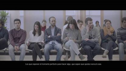 La nueva campaña televisiva muestra una "gran sala de espera", adonde acuden los jóvenes que quieren emprender un nuevo reto, pero que prefieren posponerlo porque no encuentran el momento idóneo para empezar con él. En esa metafórica habitación aguardan. "Nosotros les proponemos que no esperen el momento perfecto. Sino que sean proactivos", subrayan los miembros de la FAD. "Los que están en esa sala de espera ya pueden decidir, pero no lo hacen. Y están perdiendo el tiempo", ha recalcado Calderón sobre los spots, antes de detallar que las radios y televisiones que se sumen a la iniciativa los difundirán gratuitamente.
