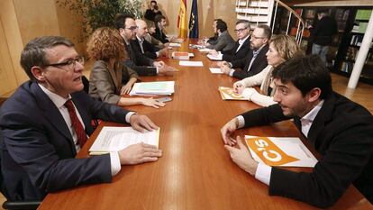 "Los dos equipos están haciendo números muy seriamente y cotejando las filosofías que hay detrás", resumió Juan Carlos Girauta, portavoz de la formación emergente en el Congreso. PSOE y Ciudadanos, según fuentes consultadas, ya han acordado medidas de lucha contra el fraude fiscal y contra la corrupción. Coinciden, también, en su oposición a la celebración de consultas de autodeterminación. La formación emergente, mientras tanto, intenta convencer a los representantes socialistas de que una reforma del sistema fiscal que acabe con sus déficits recaudatorios lograría generar los suficientes recursos como para evitar la subida de impuestos.