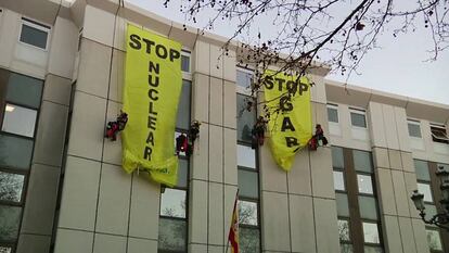 Los activistas de Greenpeace se cuelgan de la fachada del Consejo de Seguridad Nuclear