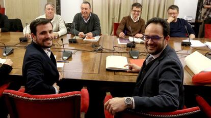 Garzón, de quien parte la iniciativa del encuentro, ha planteado que la cita sea "flexible": en la carta que envió este domingo a Pedro Sánchez, Pablo Iglesias y Joan Baldoví les pide que acudan al encuentro para "hablar tanto de acuerdos programáticos como de posibilidades de Gobierno en coalición, sin excluir de antemano ninguna opción, en función de las propuestas de cada organización". La formulación amplia permite que Podemos sostenga que va a hablar de un Ejecutivo de coalición mientras el PSOE defienda que solo negocia, de momento, una investidura. "Los sillones para el final. Lo importante, primero: las políticas", ha subrayado el portavoz del PSOE en el Senado, Óscar López.