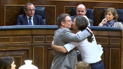 Del desprecio de Rajoy a Sánchez al beso de Iglesias, momentos del pleno