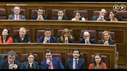 El tono socarrón, faltón e irónico del presidente en funciones, Mariano Rajoy, contra el aspirante socialista, Pedro Sánchez, y la bronca del dirigente de Podemos, Pablo Iglesias, por escorarse a la derecha han sido los momentos más comentados en las redes sociales del segundo día del pleno de investidura. En cuanto a la imagen, si ayer fue la de los secretarios generales de UGT y CC OO mirando el móvil desde la tribuna, hoy ha sido el beso que le ha dado Iglesias al diputado de En Comú Podem Xavier Domènech ante la mirada de tres de los ministros del PP, Alfonso Alonso, Luis de Guindos e Isabel García Tejerina.