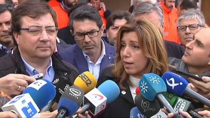 La presidenta de la Junta, Susana Díaz, ha mostrado este lunes su "absoluto respeto a la justicia" tras la citación como investigados de los expresidentes andaluces Manuel Chaves y José Antonio Griñán en el caso de los ERE. "Respeto absoluto a la justicia y lo importante es que siga su curso", ha asegurado Díaz tras visitar a los mineros de Aguablanca, encerrados en protesta por el cierre de este yacimiento en Monesterio (Badajoz).
